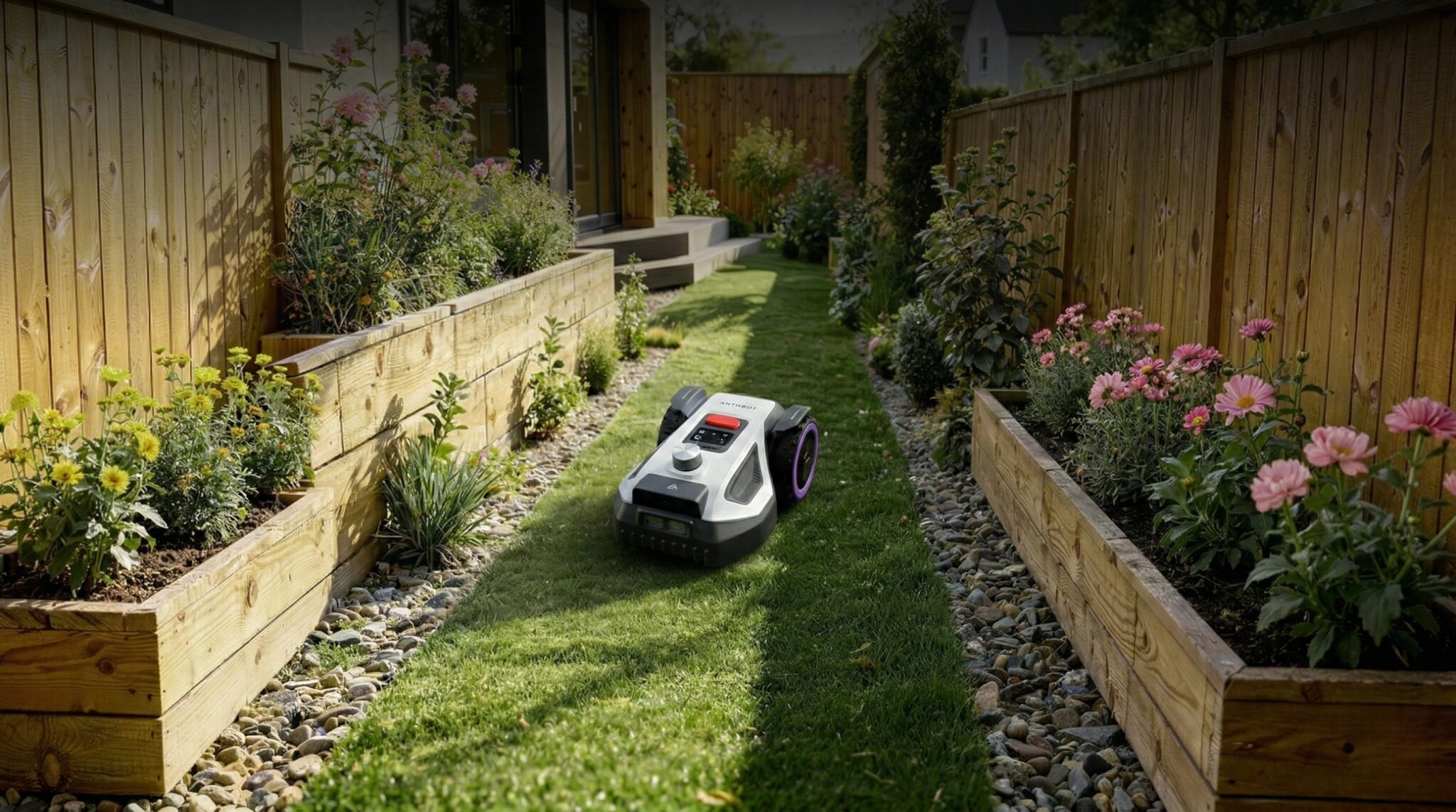 La gestion se fait depuis l’application mobile ANTHBOT. L’utilisateur ajuste la hauteur de coupe entre 3 et 7 centimètres et définit jusqu’à vingt zones distinctes. Le système de détection assisté par intelligence artificielle identifie plus de mille objets, dont les animaux domestiques et les éléments habituels du jardin.